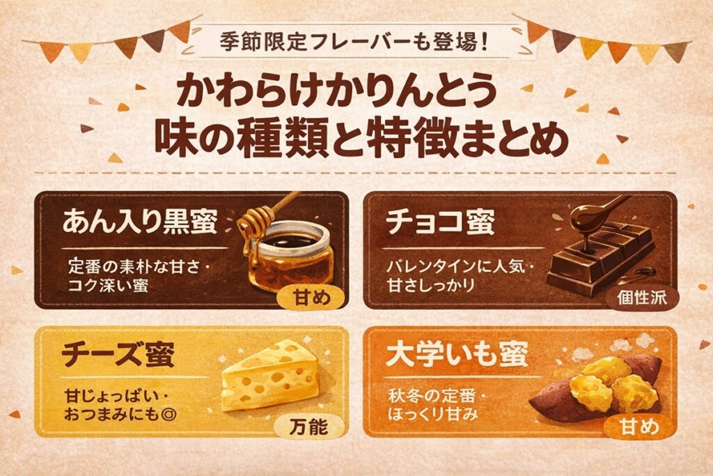 かわらけかりんとうは一種類だけじゃありません。季節や時期によって複数のフレーバーが展開されているのも魅力のひとつ。代表的な味を紹介します。