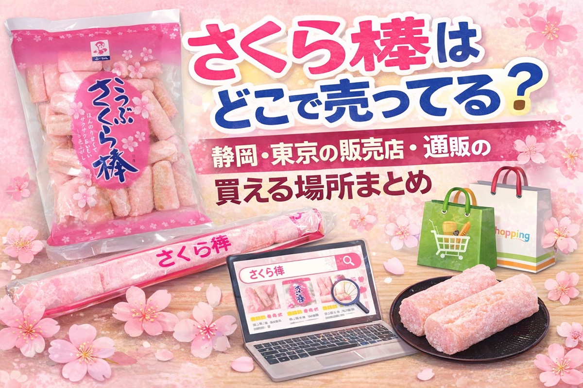 この記事では、さくら棒はどこで売ってるか?販売場所を地域別・販売方法別に徹底的にまとめました。静岡名物の麩菓子として親しまれるさくら棒を、失敗なく確実にゲットするための情報を詰め込んでいます。