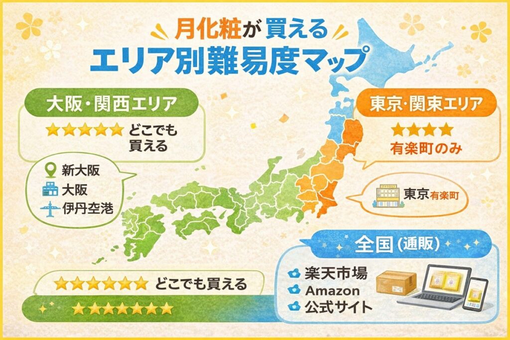 結論を先に言うと:関西にいるなら駅かイオンへ。関東なら有楽町へ。どこにいても確実に入手したいなら、公式通販(楽天・Amazon)が正解です。