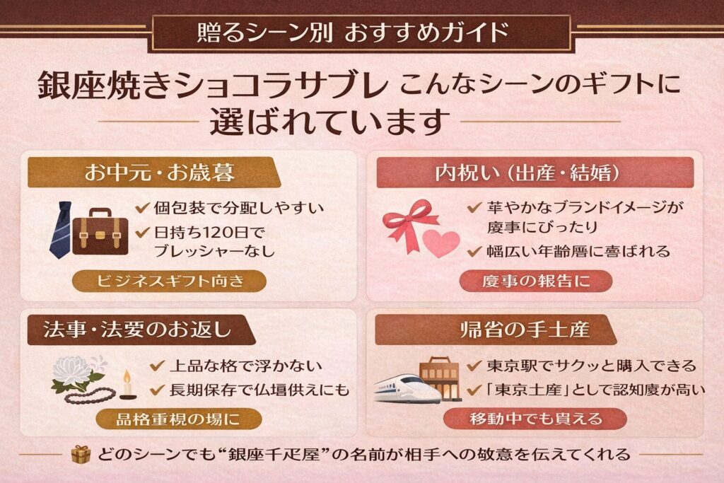 通勤・出張の動線上に店舗があるので、「ついでに買える」のが便利です。東京駅構内の東京ギフトパレット店は新幹線ユーザーにも絶好のロケーション。